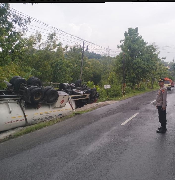Truk tangki Pertamina milik PT Dwiparama Hasta Mukti dengan nomor polisi AE-8069-UX dilaporkan mengalami kecelakaan sekitar pukul 19.00 WIB. Kendaraan diketahui melaju dari arah Nguntoronadi menuju Tirtomoyo sebelum akhirnya keluar dari badan jalan.