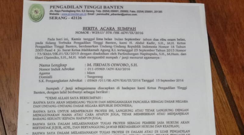 Informasi mengenai dibukanya kembali pembekuan itu dikonfirmasi melalui dokumen administrasi yang menyatakan bahwa seluruh persyaratan yang diminta telah dipenuhi dan berita acara sumpah firdaus oiwobo di legalisir kembali oleh pengadilan tinggi banten pada tanggal 19 januari 2026.