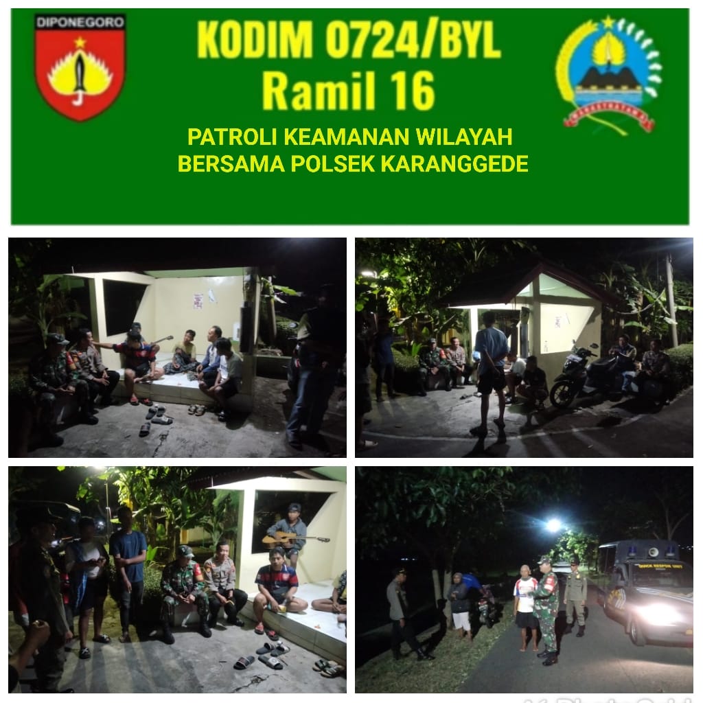 Boyolali, jatimpresisi. site – Babinsa Koramil 16/Karanggede Kodim 0724/Boyolali yang dipimpin Serka Sutarto melaksanakan patroli bersama Sistem Keamanan Lingkungan (Siskamling) di Desa Tegalsari Kecamatan Karanggede Kabupaten Boyolali. Minggu (01/02/2026) malam. Kegiatan ini dilakukan untuk memastikan situasi kamtibmas tetap aman dan kondusif.