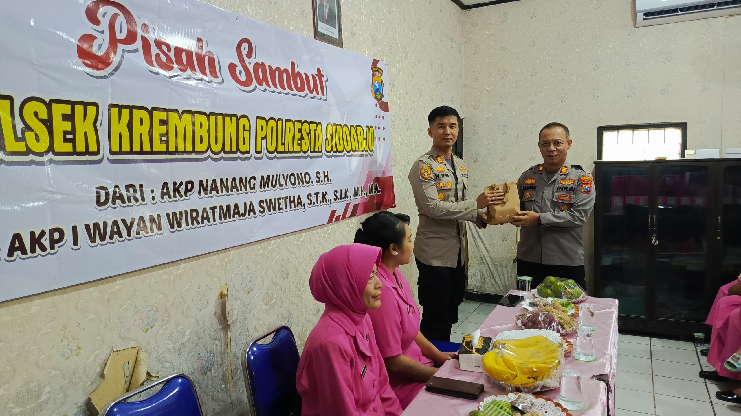 Jabatan Kapolsek Krembung diserahterimakan dari pejabat lama, AKP Nanang Mulyono, S.H., kepada pejabat baru, AKP I Wayan Wiratmaja Swetha, S.T.K., S.I.K., M.H.
