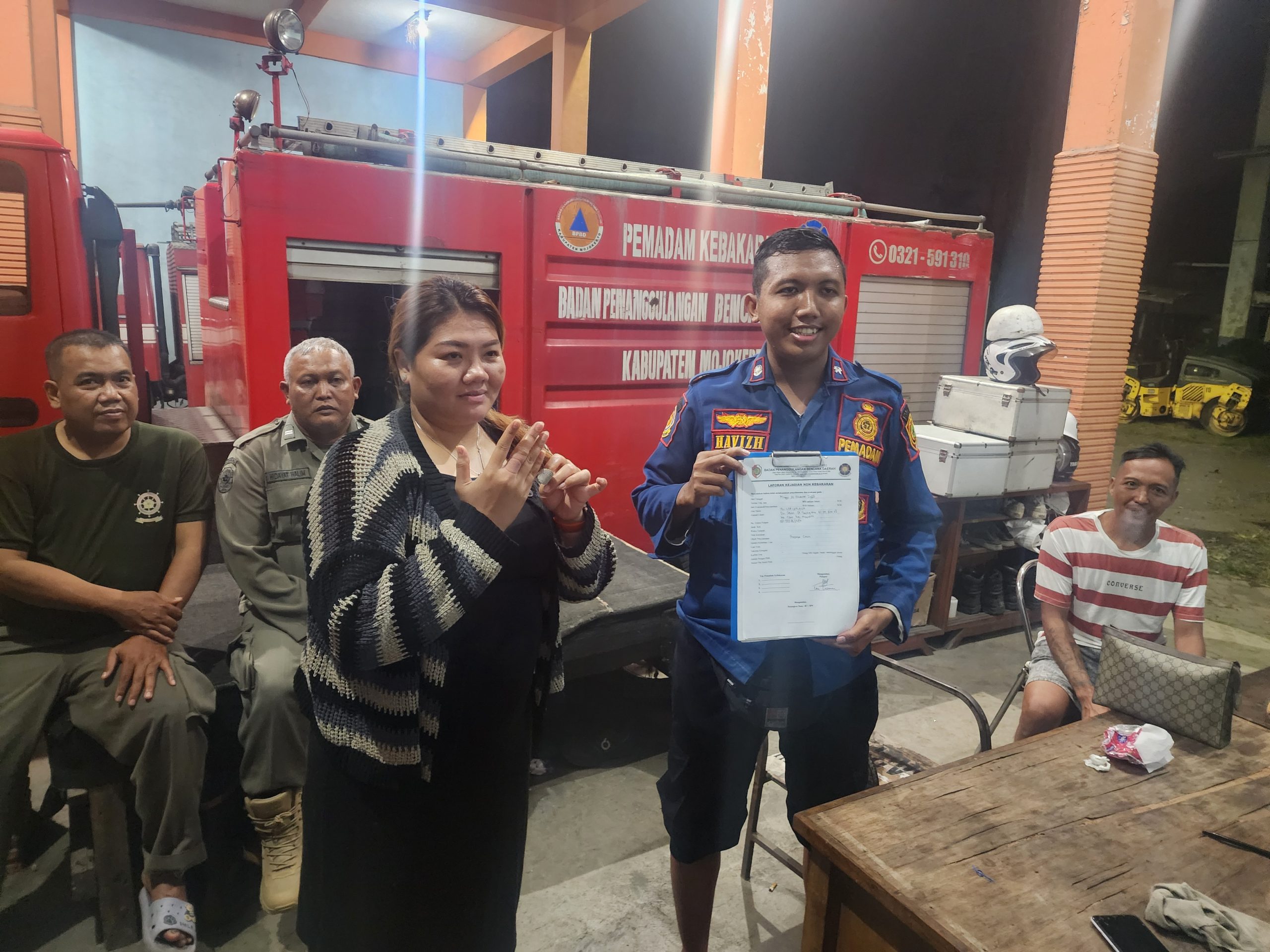 Mojokerto — Wakil Pimpinan Redaksi (Wapimred) Media Group Globalindo, Lita Listiana , menyampaikan penghargaan dan ucapan terima kasih kepada Petugas Pemadam Kebakaran (Damkar) Kabupaten Mojokerto atas respon cepat dan bantuan profesional mereka dalam melepas cincin emas yang tidak dapat dilepas dari tangan.